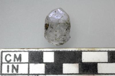 Four faceted crystal button. Fitting fragment remains inside button. One of 6 crystal buttons. See also 1986.008.0108a, d, f.Dimensions