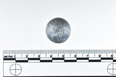2.0 cm. diameter 47.55 grams. One of nineteen round shot. See also 1986.008.2226a--k, m--s.