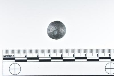 1.5 cm. diameter. 19.11 grams. Arquebus shot.