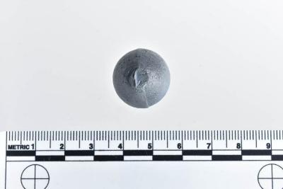 2.0 x 1.9 cm. 45.54 grams. One of eighteen round shot. See also 1986.008.2231a--f, h--r.Exhibition Label