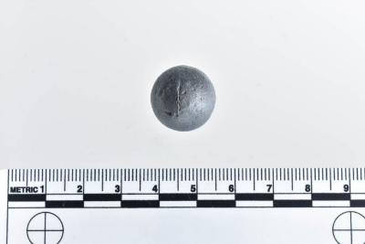 1.7 x 1.6 cm. 30.59 grams. One of eighteen round shot. See also 1986.008.2231a--g, i--r.Exhibition Label