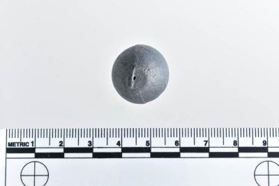 2.0 x 1.9 cm. 46.81 grams. One of eighteen round shot. See also 1986.008.2231a--m, n--r.Exhibition Label