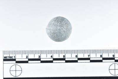 2.0 x 1.9 cm. 44.64 grams. One of ten musket shot (1986.008.2953a--j). Originally from a batch of various musket and arquebus shot accessioned under two numbers: 1986.008.2026 and 1986.008.2027.