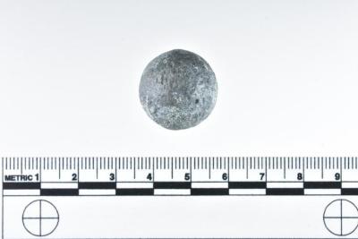 2.0 cm. diameter 48.68 grams. One of ten musket shot (1986.008.2954a--j). Originally from a batch of various musket and arquebus shot accessioned under two numbers: 1986.008.2026 and 1986.008.2027.