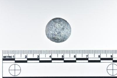 2.0 x 1.9 cm. 45.36 grams. One of ten musket shot (1986.008.2959a--j). Originally from a batch of various musket and arquebus shot accessioned under two numbers: 1986.008.2026 and 1986.008.2027.