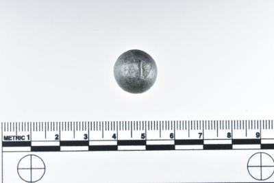 1.5 x 1.4 cm. 19.28 grams. One of ten arquebus shot (1986.008.2968a--j). Originally from a batch of various musket and arquebus shot accessioned under two numbers: 1986.008.2026 and 1986.008.2027.