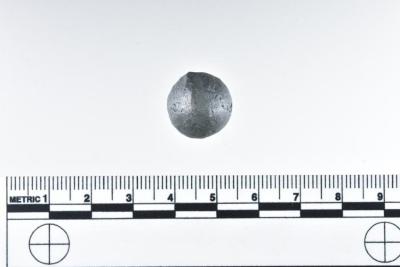 1.5 cm. diameter. 20.94 grams. One of ten arquebus shot (1986.008.2970a--j). Originally from a batch of various musket and arquebus shot accessioned under two numbers: 1986.008.2026 and 1986.008.2027.