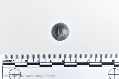 1.6 x 1.5 x 1.4 cm. 19.65 grams. One of ten arquebus shot (1986.008.2971a--j). Originally from a batch of various musket and arquebus shot accessioned under two numbers: 1986.008.2026 and 1986.008.2027.Exhibition Label
