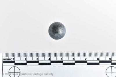 1.5 x 1.4 cm. 19.40 grams. One of ten arquebus shot (1986.008.2971a--j). Originally from a batch of various musket and arquebus shot accessioned under two numbers: 1986.008.2026 and 1986.008.2027.Exhibition Label