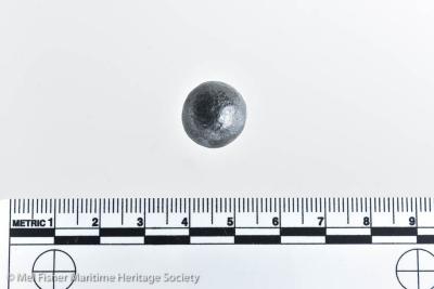1.5 x 1.4 cm. 19.33 grams. One of ten arquebus shot (1986.008.2971a--j). Originally from a batch of various musket and arquebus shot accessioned under two numbers: 1986.008.2026 and 1986.008.2027.Exhibition Label