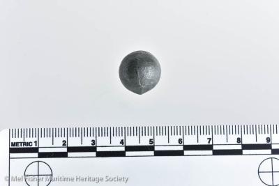 1.5 cm. diameter. 19.40 grams. One of ten arquebus shot (1986.008.2979a--j). Originally from a batch of various musket and arquebus shot accessioned under two numbers: 1986.008.2026 and 1986.008.2027.