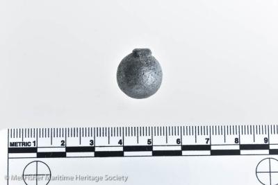 1.7 x 1.6 cm. 26.07 grams. One of ten arquebus shot (1986.008.2985a--j). Originally from a batch of various musket and arquebus shot accessioned under two numbers: 1986.008.2026 and 1986.008.2027.