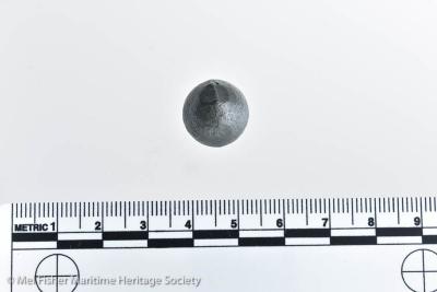 1.5 cm. diameter. 19.46 grams. One of ten arquebus shot (1986.008.2986a--j). Originally from a batch of various musket and arquebus shot accessioned under two numbers: 1986.008.2026 and 1986.008.2027.
