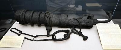 Breech loading artillery was invented in the mid-1300s, using strips of wrought iron. By the early 1600s, Europeans had learned to cast large items, including bronze and iron cannons. These were not only faster to load and fire but also much safer for the gun crew. This rail gun would have been considered antiquated and perhaps was being used as ballast.