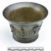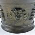 A bronze mortar from the wreck of the 1622 galleon Nuestra Señora de Atocha was used in conjunction with a pestle to grind or pulverize medicines, spices, and foods. This example bears the likenesses of cherubic or angelic figures. It is 9.2 centimeters tall and 13.8 centimeters in diameter.Dimensions