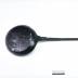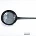 A skillet or frying pan has a long tapering handle that opens to a wide, shallow, everted pan. Cooking on galleons was done with an open flame, and the long handle would have allowed the user to move and shake the pan without having to put a hand near the fire. The handle is stamped with an “M,” likely the maker’s mark.Dimensions