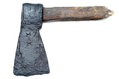 Blade of typical flattened- tapering form and bearing the marks 'X . X', partial handle. Length of blade 16.5 cm.Exhibition Label