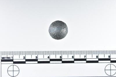 1.5 cm. diameter. 20.81 grams. One of ten arquebus shot (1986.008.2968a--j). Originally from a batch of various musket and arquebus shot accessioned under two numbers: 1986.008.2026 and 1986.008.2027.