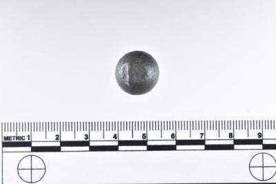 1.5 x 1.4 cm. 19.07 grams. One of ten arquebus shot (1986.008.2968a--j). Originally from a batch of various musket and arquebus shot accessioned under two numbers: 1986.008.2026 and 1986.008.2027.