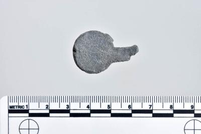 One of ten shot (1986.008.3005a--j). Originally from a batch of various split shot halves accessioned under one number: 1986.008.0866.Dimensions