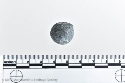1.9 x 1.8 cm. 34.19 grams. Musket shot. One of ten shot (7 arquebus, 3 musket 1986.008.3015a--j). Originally from a batch of various musket and arquebus shot accessioned under two numbers: 1986.008.2026 and 1986.008.2027.