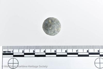 1.7 cm. diameter. 30.68 grams. One of ten musket shot (1986.008.3016a--j). Originally from a batch of various musket and arquebus shot accessioned under two numbers: 1986.008.2026 and 1986.008.2027.