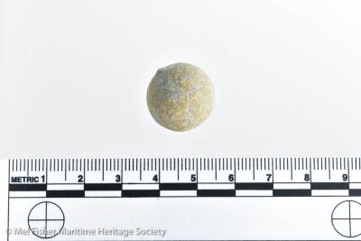 1.8 cm. diameter. 36.65 grams. One of ten musket shot (1986.008.3016a--j). Originally from a batch of various musket and arquebus shot accessioned under two numbers: 1986.008.2026 and 1986.008.2027.