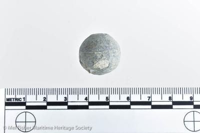 2.0 x 1.9 cm. 42.99 grams. One of ten musket shot (1986.008.3017a--j). Originally from a batch of various musket and arquebus shot accessioned under two numbers: 1986.008.2026 and 1986.008.2027.