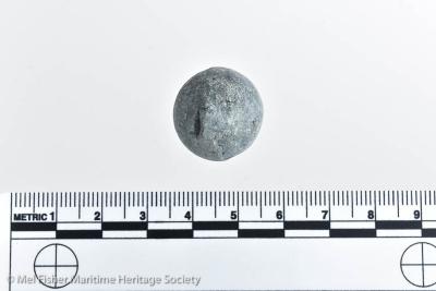 2.0 cm. diameter. 46.95 grams. One of ten musket shot (1986.008.3017a--j). Originally from a batch of various musket and arquebus shot accessioned under two numbers: 1986.008.2026 and 1986.008.2027.